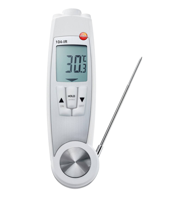 食品收貨,架上陳列食品,食品倉儲,testo 104-IR 食品安全測溫儀為您忙碌的食品日常安全檢查工作提供快速準(zhǔn)確的溫度測量。適用于食品業(yè),餐館以及食品零售業(yè)。
