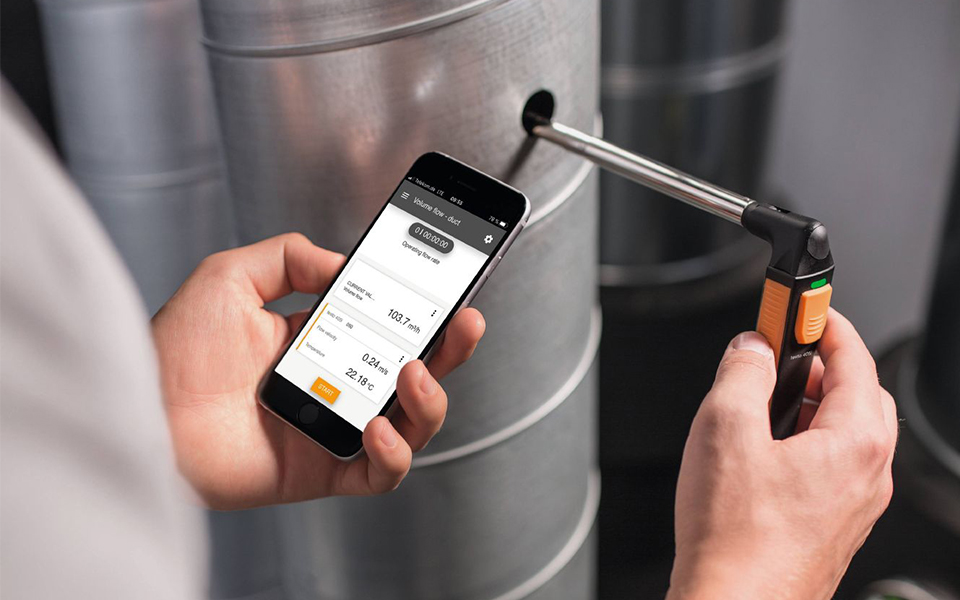 通過testo Smart APP可在智能手機(jī)或平板電腦上方便地查看測(cè)量數(shù)據(jù),此外,通過應(yīng)用程序還可以方便地對(duì)體積流量進(jìn)行測(cè)定,輸入精確管道橫截面的參數(shù),應(yīng)用程序就可以自動(dòng)為您計(jì)算出相應(yīng)的完整結(jié)果。