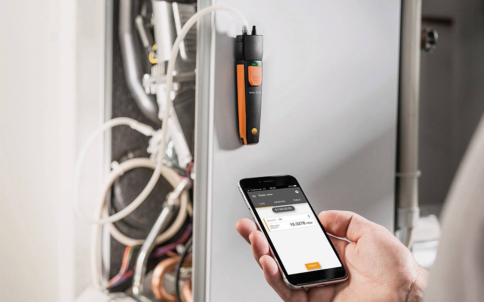 testo 510i 無線迷你差壓測量儀結合專業(yè)的測量技術和智能手機操作,用于測量壓差、空氣流速和體積流量。測量讀數(shù)可以通過 testo Smart APP 智能應用程序方便地在智能設備(手機/平板電腦上)進行查看,并通過電子郵件直接發(fā)送。