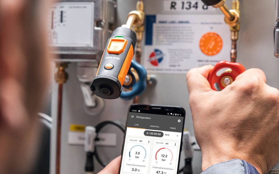 智能無線迷你壓力測量儀,適用于對空調(diào)和制冷系統(tǒng)進(jìn)行維修和故障排除。此外,通過安裝在智能設(shè)備(手機(jī)或平板電腦)testo Smart APP智能應(yīng)用程序還可以自動計算蒸發(fā)和冷凝溫度。
