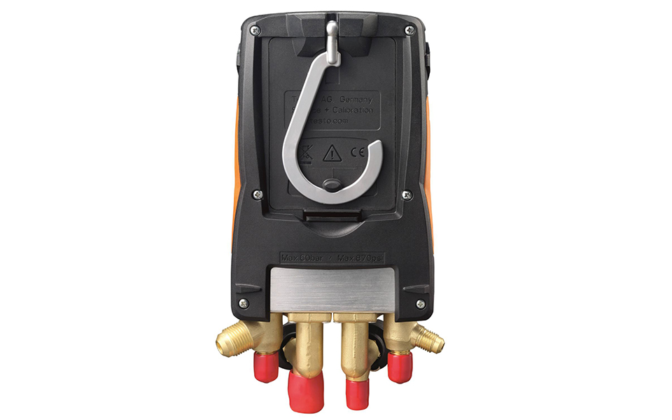 testo 557 智能專業(yè)級電子冷媒表組配備堅固外殼,有效保護外部撞擊。背部自帶掛鉤可確保在測量過程中儀器始終處于安全的位置。超大背光顯示屏確保您在照明條件不足的情況下也可清晰讀取數(shù)據(jù)。