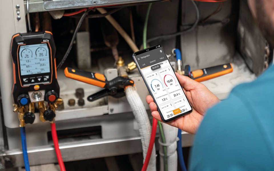 testo 557s - 帶藍牙和四通閥組的智能數(shù)字冷媒表